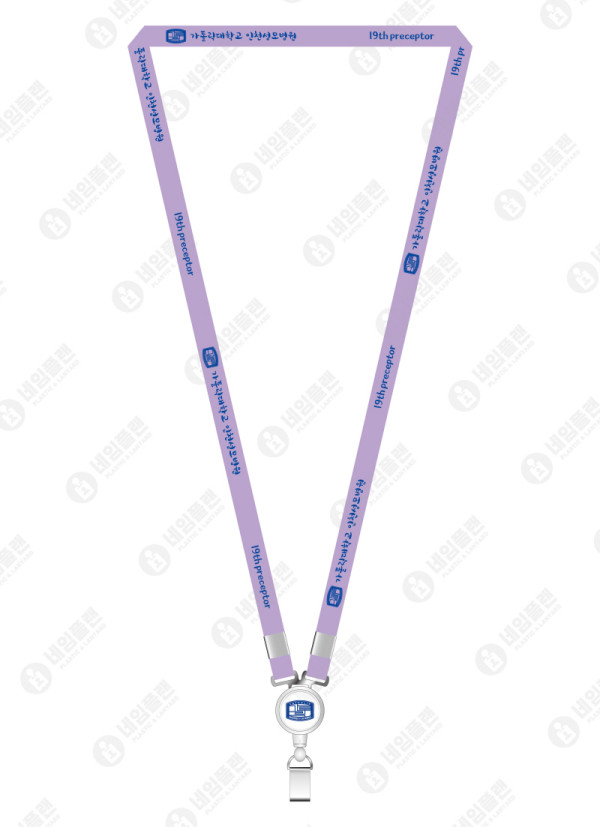 [ 상품 정보 ] 1. 줄 폭 : 10mm 2. 줄 색상 : 연보라계열 맞춤컬러 3. 줄 인쇄 : 전사인쇄 (풀컬러 인쇄) 4. 릴홀더 인쇄 : 가톨릭대학교 마크