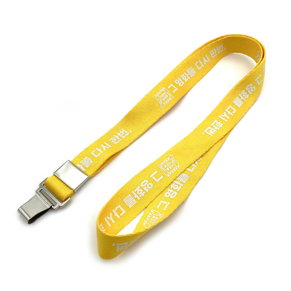 가장 줄폭이 넓은 20mm에 제작한 목걸이입니다. 1. 줄 폭 : 20mm 2. 줄 인쇄 : 실크인쇄 (단색 인쇄) 3. 고리모양 : 클립집게