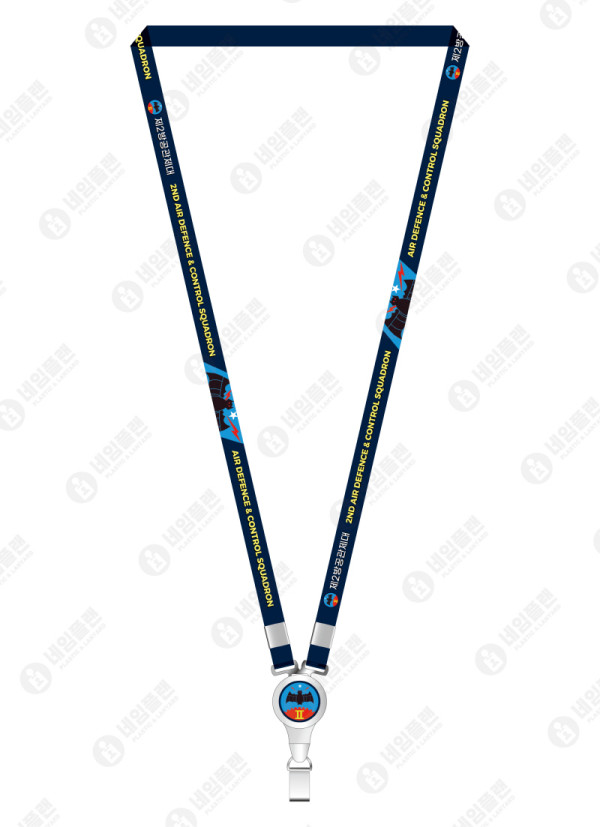 [ 상품 정보 ] 1. 줄 폭 : 10mm 2. 줄 색상 : 짙은 네이비 3. 줄 인쇄 : 전사인쇄 (풀컬러 인쇄) 4. 릴홀더 인쇄 : 부대 마크 5. 특이사항 : 앞면만 로고인쇄, 뒷면은 배경색만 인쇄하였습니다.