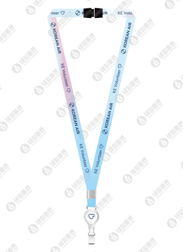[ 상품 정보 ] 1. 줄 폭 : 15mm 2. 줄 색상 : 맞춤 그라데이션 3. 줄 인쇄 : 전사인쇄 (풀컬러 인쇄) 4. 릴홀더 인쇄 : 대한항공 로고 5. 특이사항 : 안전핀 추가