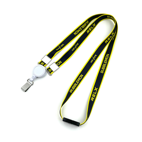 위베이프에서 제작한 릴홀더목걸이입니다. 1. 줄 폭 : 15mm 2. 줄 인쇄 : 풀컬러 전사인쇄 (투톤컬러) 3. 릴홀더 인쇄 : 없음