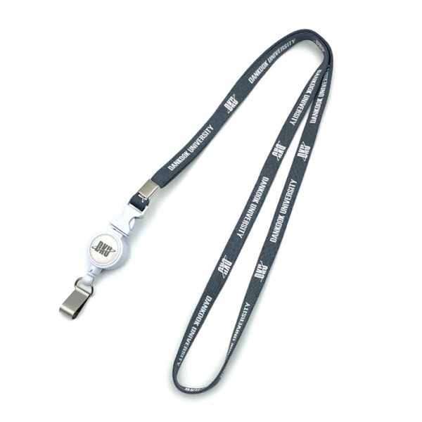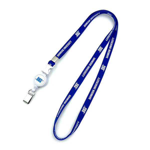 단국대학교에서 제작한 릴홀더목걸이입니다. 1. 줄 폭 : 10mm 기본 2. 줄 인쇄 : 단색 실크인쇄 3. 릴홀더 인쇄 :단국대학교 엠블럼