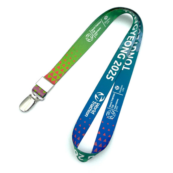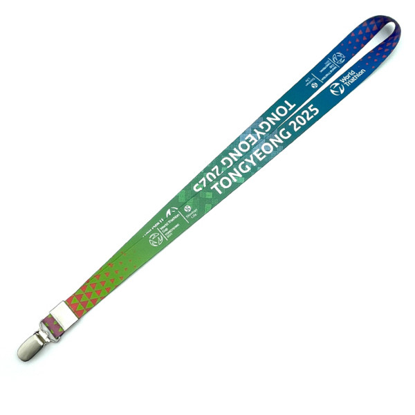 2025 통영 철인 3종 행사용으로 사용된 명찰 목걸이입니다. 1. 줄 폭 : 20mm 2. 줄 인쇄 : 풀컬러 전사인쇄 (그라데이션)