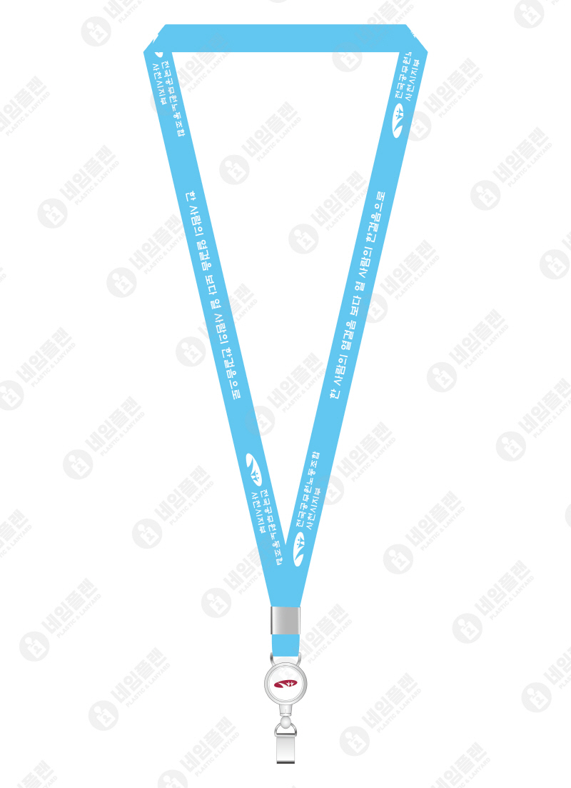 [ 상품 정보 ] 1. 줄 폭 : 15mm 2. 줄 색상 : 하늘색(맞춤컬러) 3. 줄 인쇄 : 풀컬러 전사인쇄 4. 릴홀더 인쇄 : 전국공무원노동조합 CI